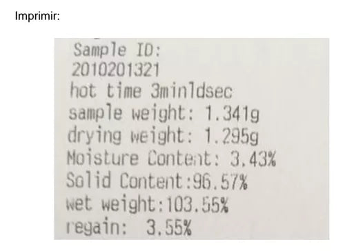 Calibração Célula de carga Alemanha de alta precisão Tela sensível ao toque de 5 polegadas (aprox. 13 cm), fácil de operar exibir curva de umidade Pode ser salvo 32 grupos pela interface RS232 para conectar a impressora e o PC Faixa de umidade de 0,1%-0,01%-100%